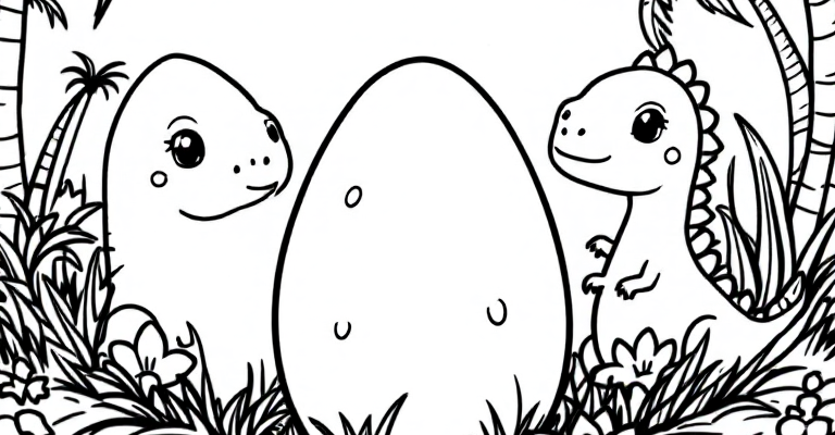 Погрузитесь в увлекательный мир динозавров с нашей раскраской с яйцами 🦕🐣 Простые рисунки для детей делают процесс веселым и творческим ✏️🌿 Развивайте