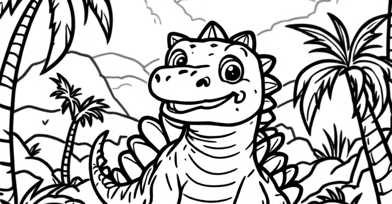 Погрузитесь в удивительный мир динозавров с раскраской Улыбка стегозавра 🦕🌿 Эта простая и дружелюбная иллюстрация идеально подходит для детей, развивая