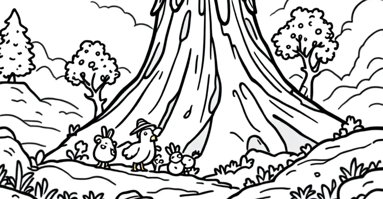 Погрузитесь в весёлые приключения у дружелюбного вулкана с нашей раскраской для детей 🌋🖍️ Простые и забавные рисунки помогут развивать фантазию и творческие