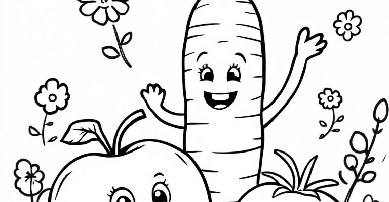 Веселые улыбающиеся фрукты и овощи готовы к раскрашиванию🎨🍎🥕Этот простой черно-белый рисунок идеально подходит для детей👧🧒Развивайте творческие навыки