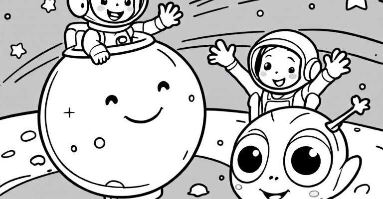 Погрузитесь в мир дружелюбных космических приключений с нашими замечательными раскрасками 🚀👩🚀👽 Простые и милые персонажи создадут атмосферу радости и