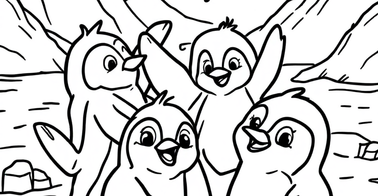 Веселые танцующие пингвины в раскрасках подарят детям радость и вдохновение для творчества ❄️🐧 Простой и дружелюбный дизайн подходит для малышей, развивает