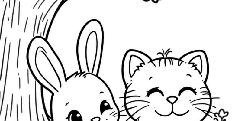 Раскрашивайте с удовольствием милых животных 🐰🐱🐦 в простой и приятной сцене для детей 🌳🌸 идеальная раскраска для малышей развивает моторику и фантазию