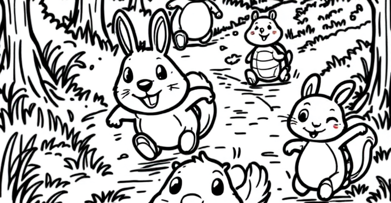 Приглашаем в захватывающий мир детских раскрасок с веселыми гонками капибары и ее лесных друзей 🐾🌳 Простые и дружелюбные рисунки помогут развить фантазию
