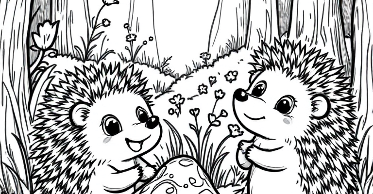 Насладитесь раскраской весёлых ёжиков в лесу с простыми и дружелюбными рисунками для детей 🦔🌼🌿 Простые контуры и милые детали помогут развить творчество