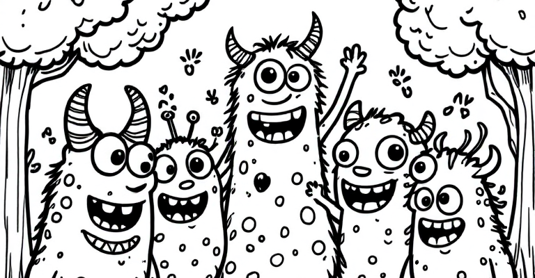Весёлые монстры на нашей раскраске помогут детям развить фантазию и творческие навыки 🌈🖍️ Простые и дружелюбные персонажи с большими глазами и улыбками