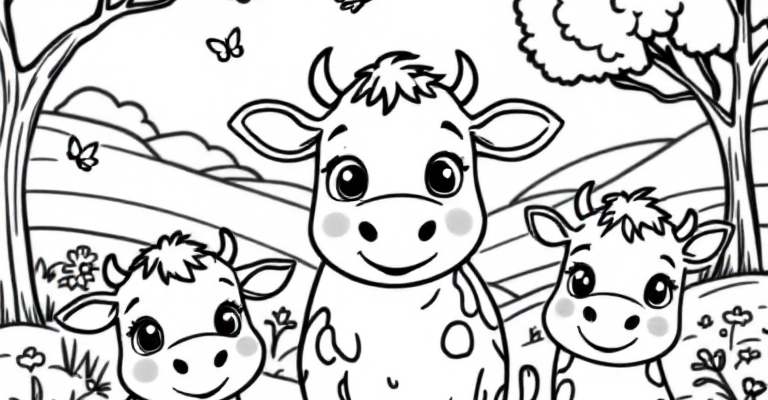 Веселые коровы на лугу ждут своих друзей раскрасить их яркими цветами 🌼🐄 Увлекательная и простая раскраска для детей поможет развить творческие способности