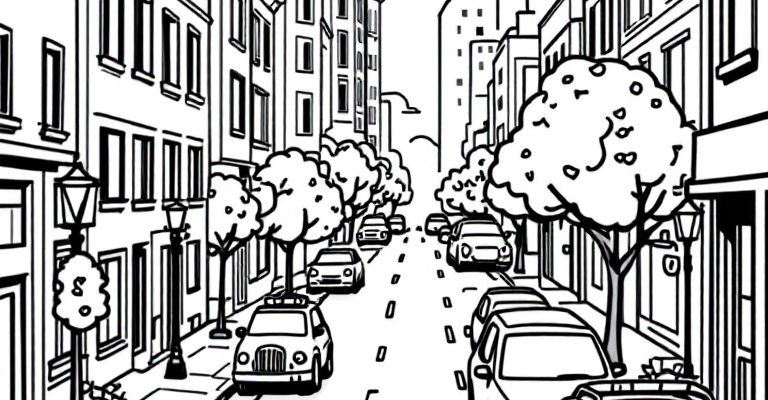 Погрузитесь в яркий мир города Роблокс с нашим раскрашенным черно-белым рисунком 🏙️🖍️ Простые здания, дружелюбные персонажи и веселые машины ждут вашего