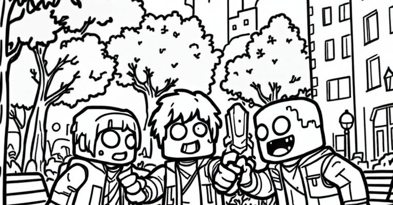Погрузитесь в мир Роблокс и научитесь легко и весело бороться с зомби в нашем новом раскраске для детей 🌳🧟♂️✨ Цветные персонажи и простые сцены помогут