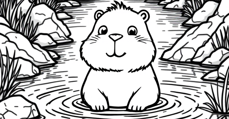 Погрузитесь в мир природы с раскраской капибары в реке 🦦 Такая простая и дружелюбная картинка идеально подходит для детей 🎨 Развивайте творческие способности