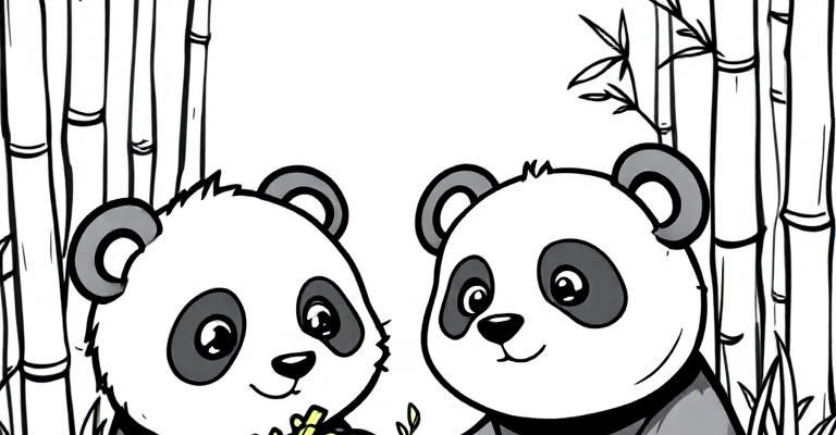 Погрузитесь в волшебный мир с милыми пандами на нашей раскраске 🐼🌿 Этот рисунок прост и понятен для детей, идеально подходит для развития творчества и