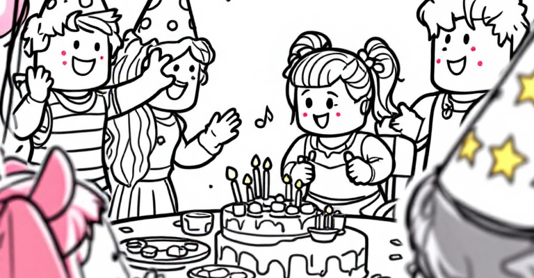 Погрузитесь в радостный мир Roblox с раскраской веселой вечеринки Robloxians 🎉 Здесь дети могут раскрасить дружелюбных персонажей, воздушные шары 🎈 и праздничный