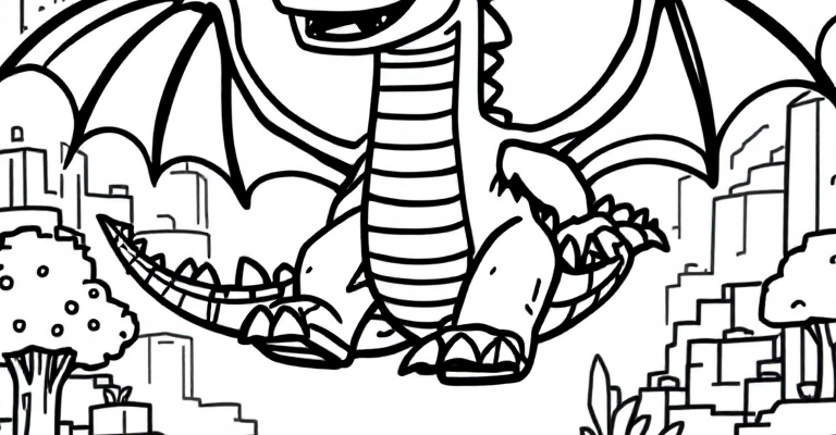 Погрузитесь в захватывающую битву с Драконом Края в Майнкрафт 🌟 Эта раскраска дарит веселую и дружелюбную сцену с героем и драконом 🐉 Легкие контуры и