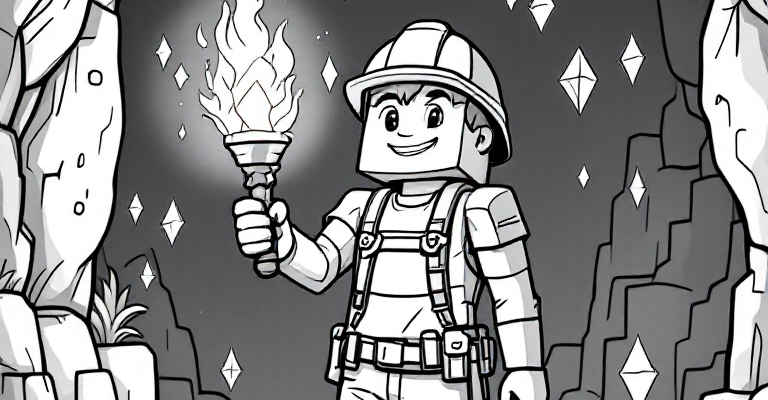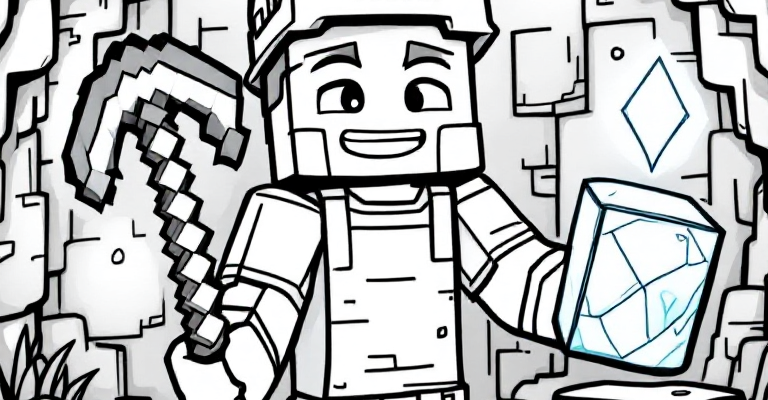 Отправляйся в увлекательное путешествие по шахте в Minecraft и ищи блестящие алмазы 💎! Наш раскраска показывает простую и радостную сцену с горняком и