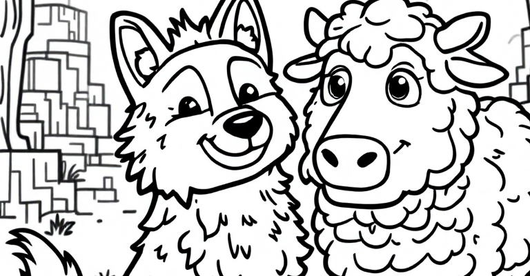 Погрузитесь в удивительный мир Майнкрафт с изображениями волков, овец и коров в раскрасках для детей 🎨🐺🐑🐄 Простой и дружелюбный дизайн помогает развивать