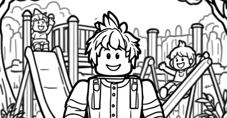 Погрузитесь в мир Roblox через нашу раскраску с весёлыми персонажами и игровыми площадками 🖍️🎈 Этот простой и дружелюбный сюжет идеально подходит для детей