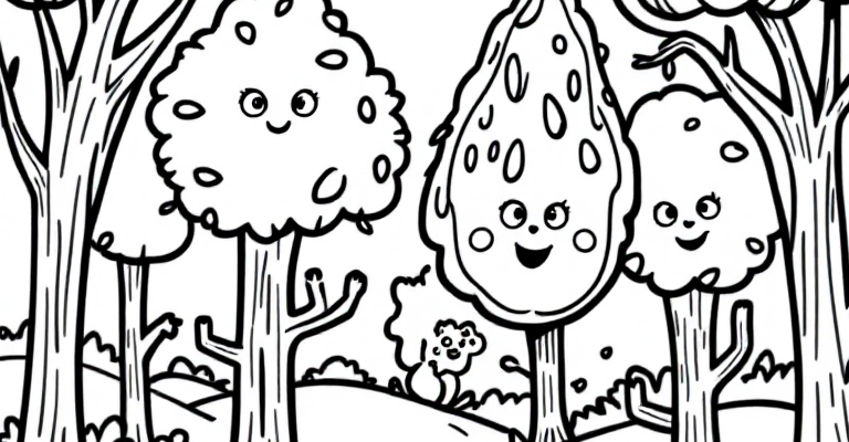 Погрузитесь в волшебный мир дружелюбных деревьев 🌳 где каждый лист и улыбка оживают в вашей раскраске 🎨 Простые и веселые картинки вдохновят детей на творчество