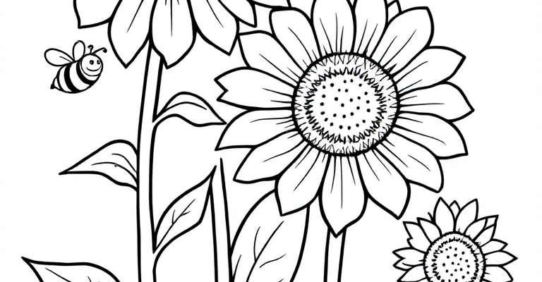 Откройте мир подсолнухов и пчёл с нашей детской раскраской 🌻🐝 Она проста и весела, идеально подходит для маленьких художников 🎨 Развивайте творческие способности
