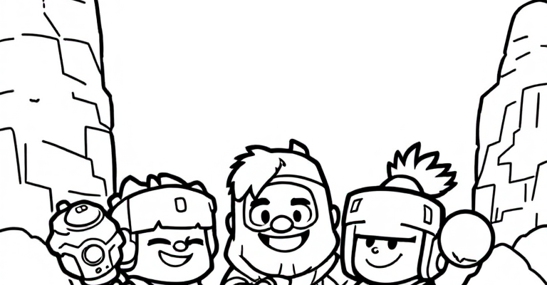 Открой для ребенка мир Brawl Stars с яркой раскраской 🖍️ Три знакомых героя в простой и дружелюбной сцене создадут настроение радости и творчества 🎨 Простые