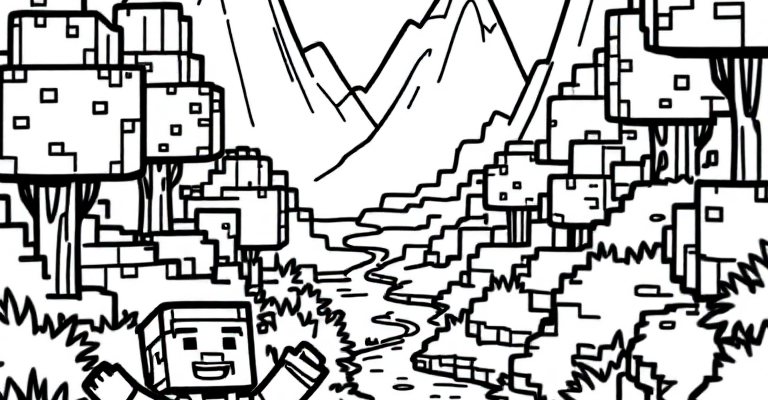 Погрузитесь в красочный мир Minecraft с нашей раскраской для детей 🌳🏞️👾 Простые и добрые линии помогут малышам развить воображение и улучшить моторику