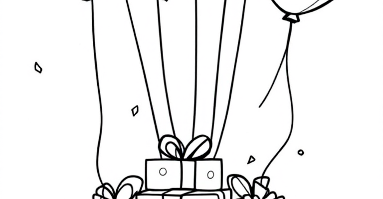 Откройте мир веселья с нашим раскраской с шариками и подарками 🎈🎁 Простые и яркие рисунки для детей развивают воображение и творческие навыки 🌟 Идеально
