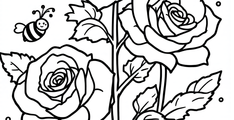 Весёлый сад: розы, пчёлки и божья коровка для раскрашивания 🌸🐝🐞 Привет, юные художники! Сегодня у нас чудесная раскраска с садом 🌞 На картинке три красивые