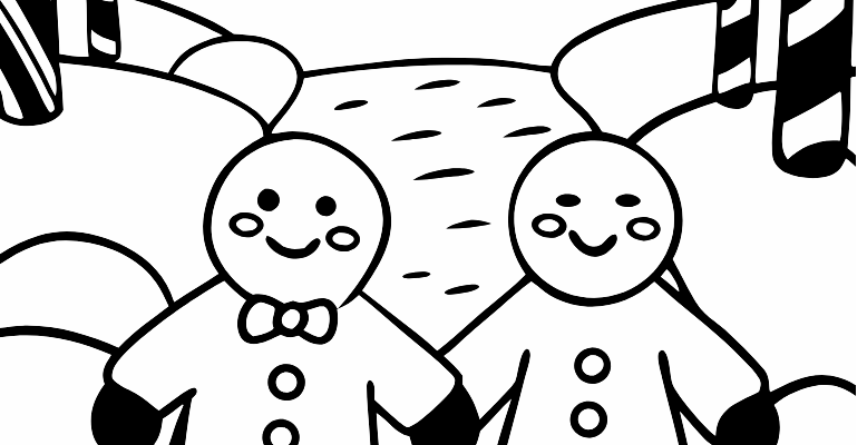 Весёлые пряничные друзья: раскраска для детей 🎨✨ Привет, маленькие художники! 🧒👧 Сегодня у нас особенная раскраска с двумя улыбающимися пряничными человечками!
