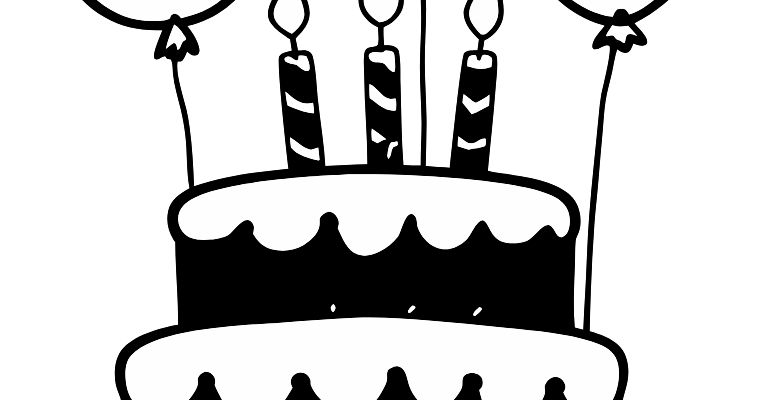 🎂 Раскраска День рождения торт свечи шарики подарок! 🎉 Прекрасный рисунок для творчества ждёт вас! 🎨 Трёхъярусный торт с весёлыми свечами, воздушные шарики