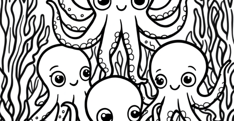 Погрузитесь в море радости с веселыми осьминогами для раскрашивания 🐙🖍️ Простые контуры и добрые морские друзья помогут детям развивать творческие навыки