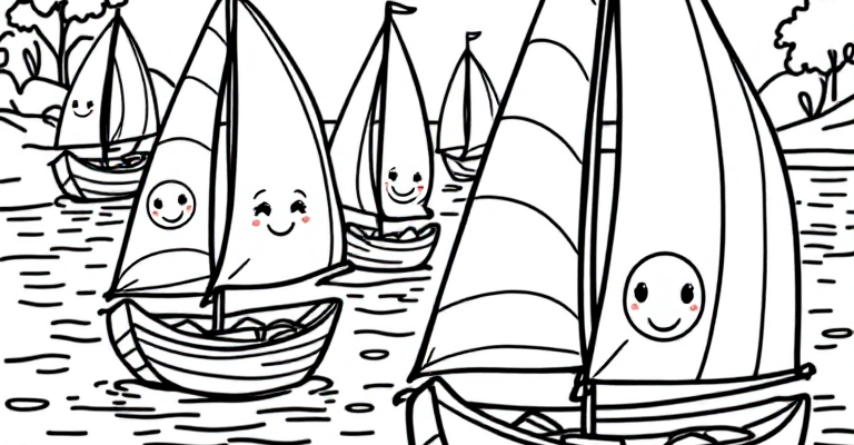 Погрузитесь в мир весёлых парусных лодок с этим раскрасками 🎨⛵ Простые контуры и дружелюбные детали помогут детям развить творческие способности и познакомиться
