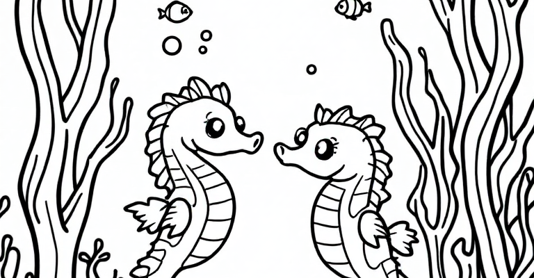 Погрузитесь в увлекательный мир морских коньков и кораллов в нашей новой раскраске для детей 🐠🐚 Весёлые морские коньки и красивые кораллы ждут юных художников