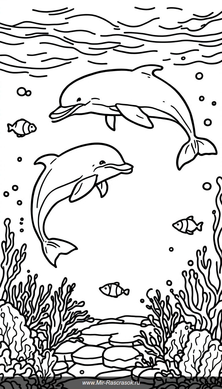 Погрузитесь в увлекательный мир дельфинов и китов 🌊 вместе с нашей раскраской 🐬 Простые и добрые изображения подойдут детям 🎨 Развивайте творчество и узнайте больше о морских обитателях вместе с нами 🐋