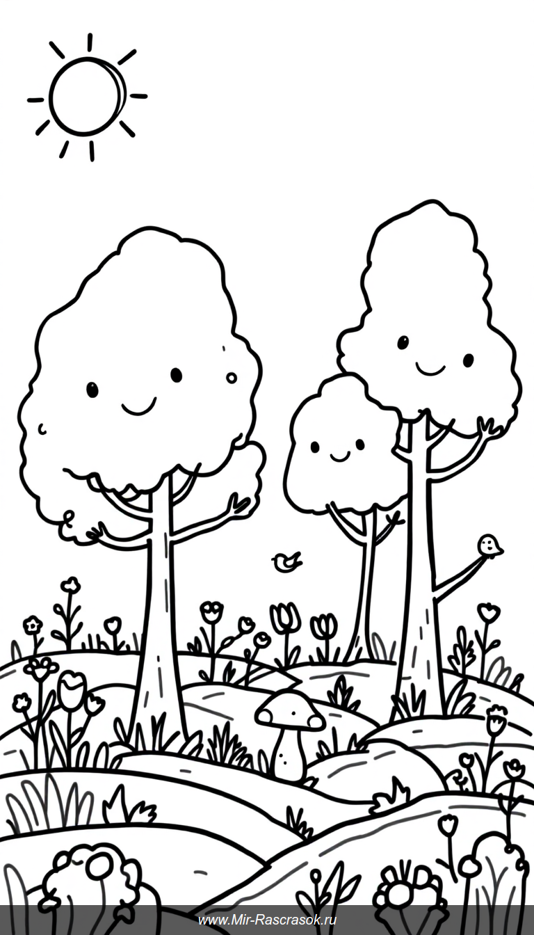 Погрузитесь в мир дружелюбных деревьев 🌳 с нашими раскрасками для детей 🎨 Простые и позитивные рисунки помогут развить творчество и весело провести время 📚🌞