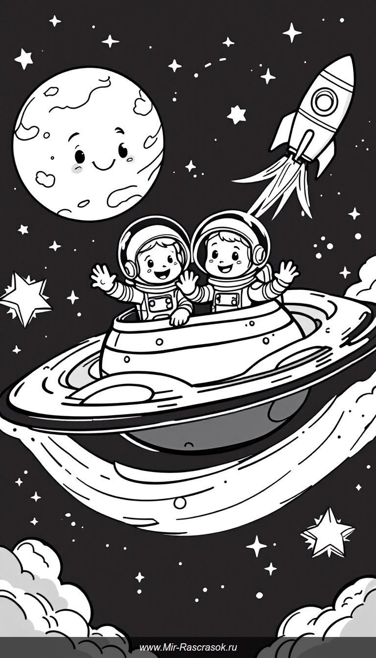 Отправляйтесь в дружелюбные космические приключения с нашими раскрасками для детей 🌟👩‍🚀 Веселые астронавты, ракеты и планеты ждут вашего творчества 🚀 Развивайте фантазию и любознательность вместе с нами 🌌🖍