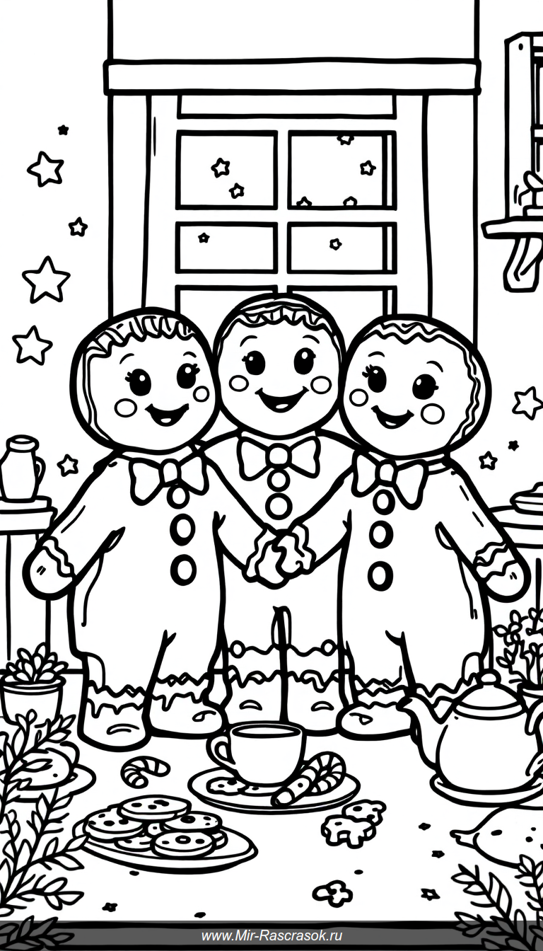 Погрузитесь в радостный мир раскрасок с друзьями-пряниками 🍪✨ Очаровательные черно-белые рисунки помогают развить творческие способности детей и подарят праздничное настроение 🎨👧🧒 Идеальное занятие для всей семьи зимой и в любое время года