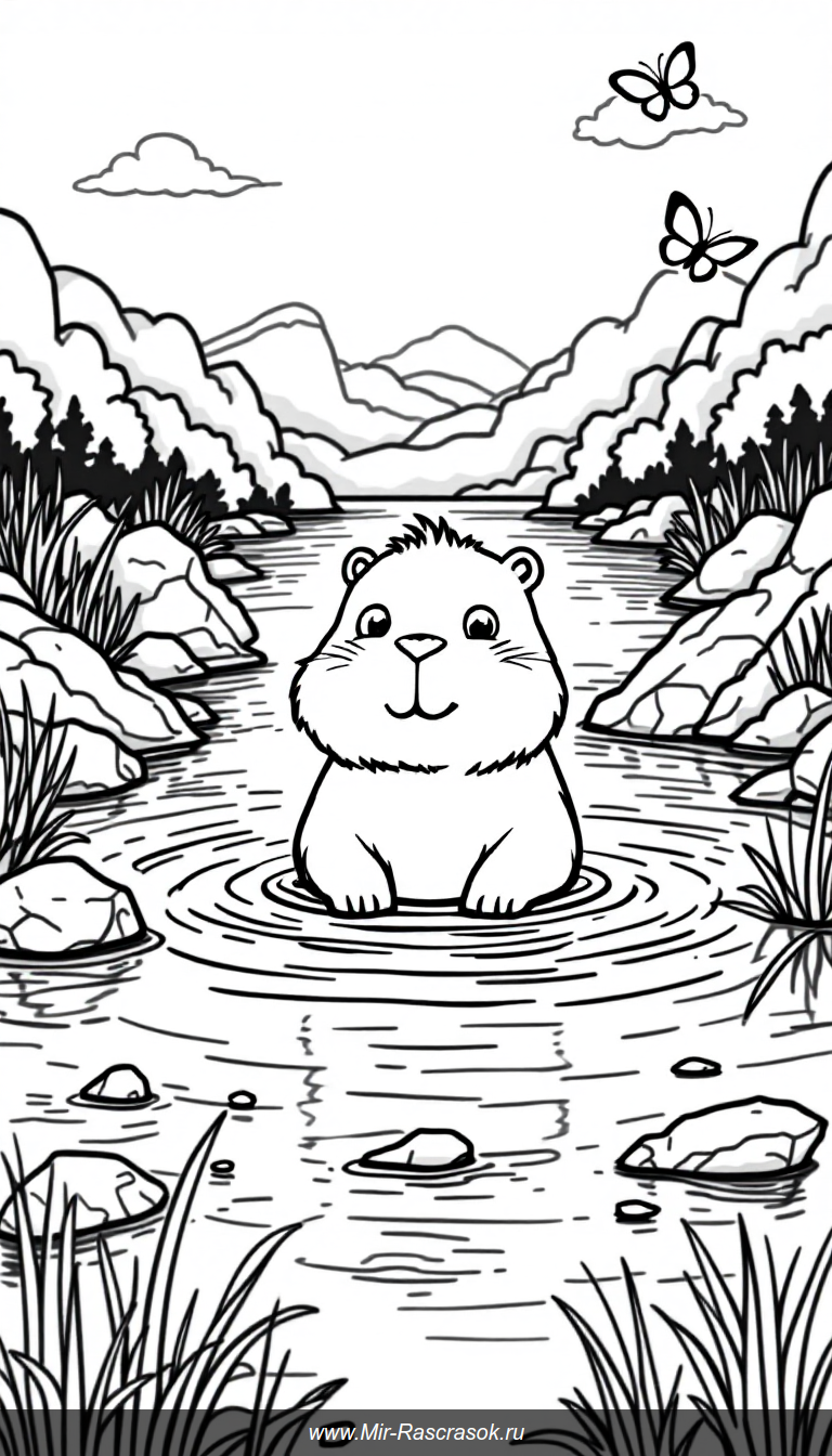 Погрузитесь в мир природы с раскраской капибары в реке 🦦 Такая простая и дружелюбная картинка идеально подходит для детей 🎨 Развивайте творческие способности и узнайте больше о милых животных вместе с нами 🌿 Весёлое обучение и творчество ждут вас на нашем сайте!