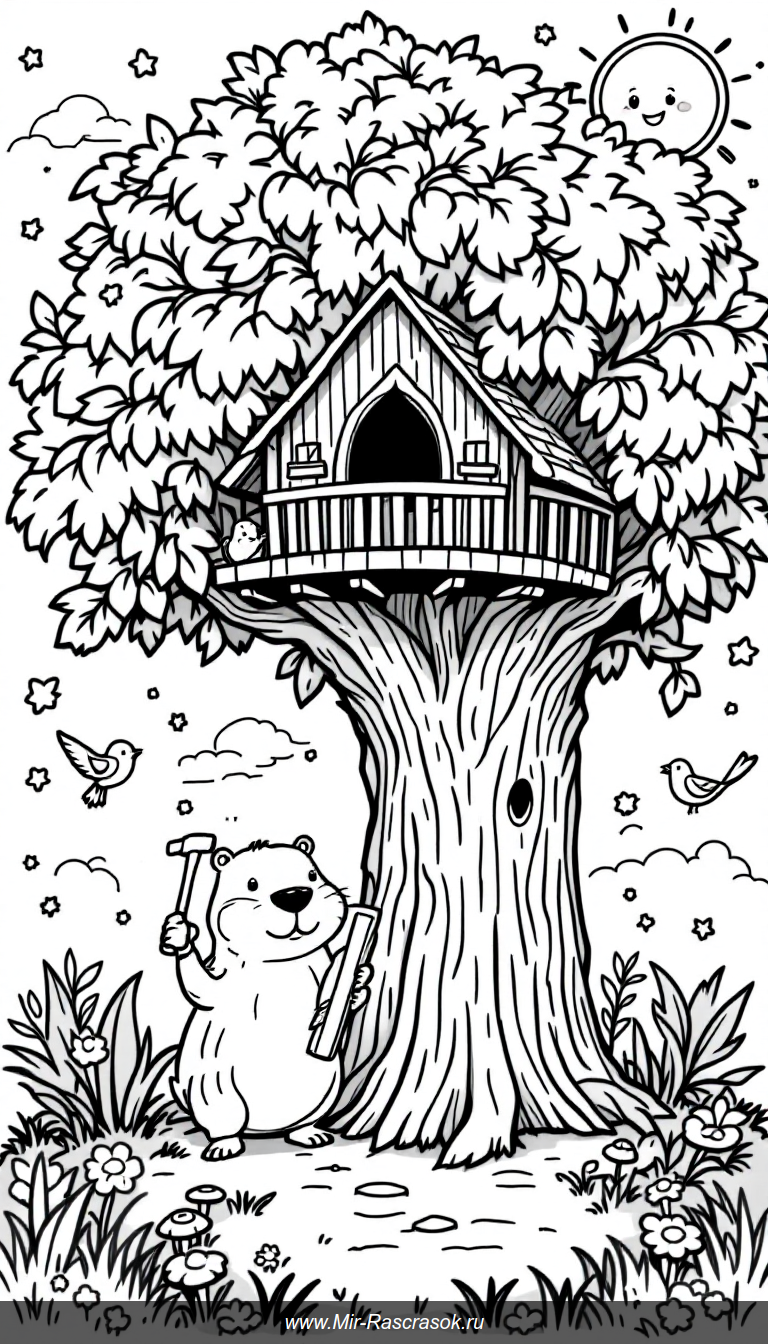 Приглашаем детей в увлекательный мир творчества где капибара строит дом на дереве 🐾🌳 Веселое занятие раскраской развивает фантазию и моторику рук Подарите ребенку радость творчества с нашей раскраской!