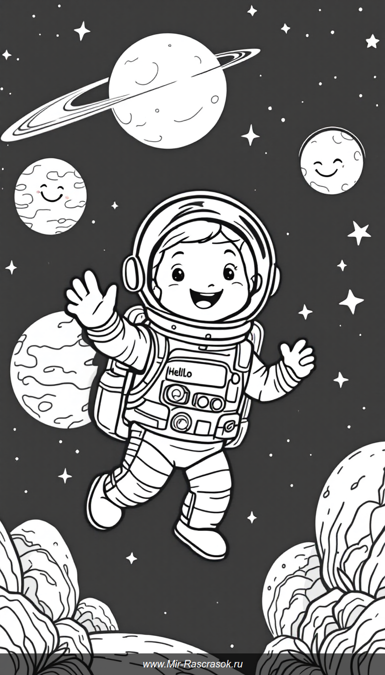 Раскрасьте мир космоса с нашими новыми картинками про астронавтов 🚀 Отличная раскраска для детей о звездах и планетах⭐ Скачайте бесплатно и начните веселье в невесомости! 🎨