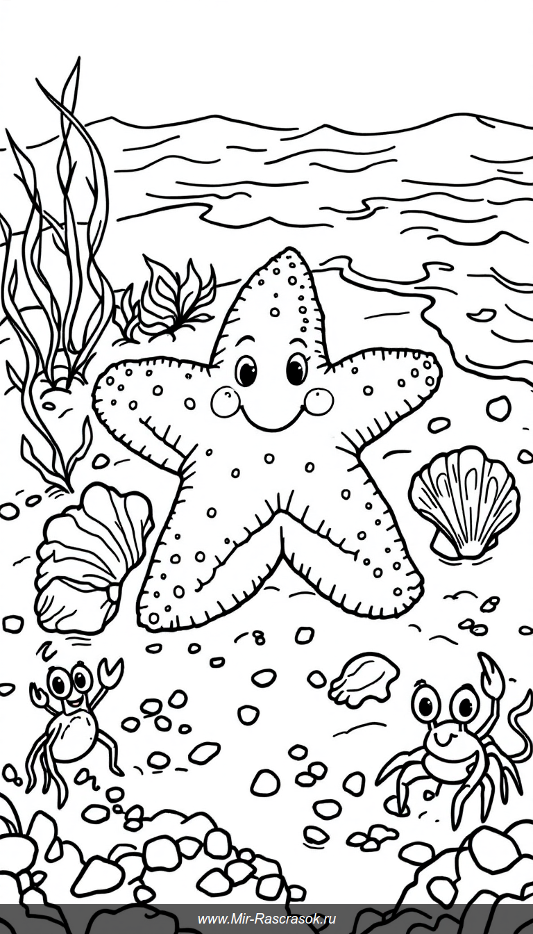 Откройте для детей мир моря с раскрасками с морской звездой и ракушками 🐚🌊 Простой и добрый дизайн помогает развивать творческие навыки и дарит радость от игры с цветом 🎨 Наши раскраски легко и интересно заполнять цветами, создавая позитивный опыт для малышей 👍