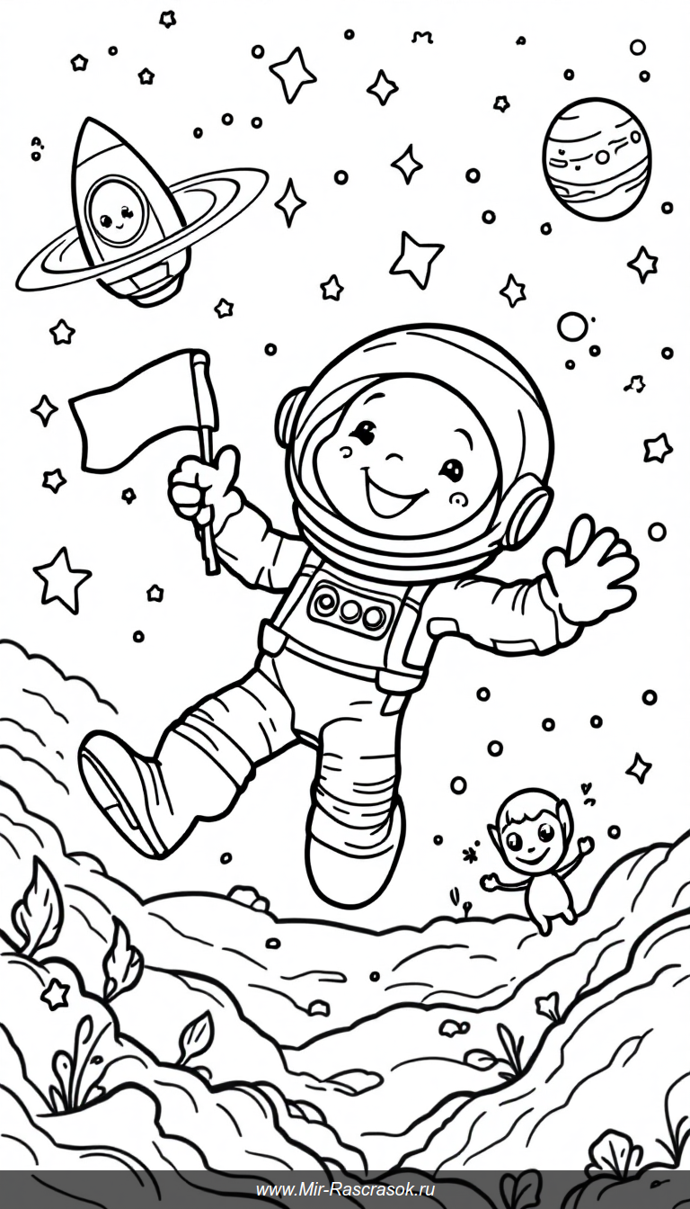 Погрузитесь в мир приключений с нашим раскраской астронавта в космосе 🚀👩🚀 наслаждайтесь творчеством и развивайте фантазию яркими красками 🌟👽 отличный способ познакомить детей с космосом и наукой 🌌