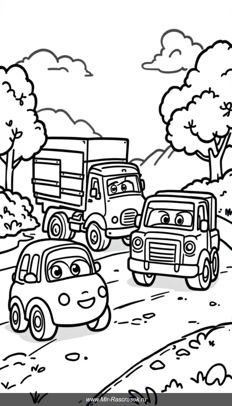 Раскраска с простыми машинами и грузовиками идеально подходит для малышей 🚌🚗 Простые линии делают процесс раскрашивания легким и веселым 🎨 Развивайте творческие способности ребенка с этой дружелюбной и понятной раскраской для детей всех возрастов 🌈