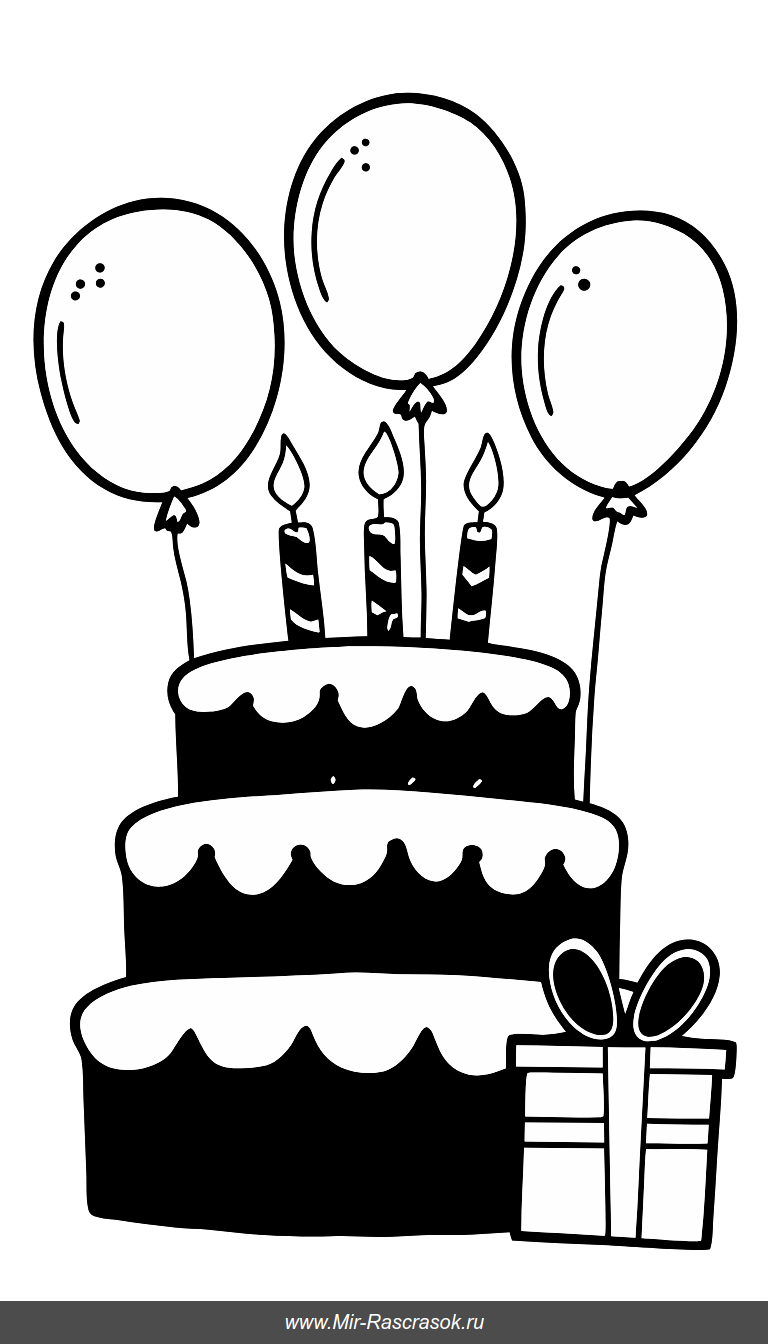 🎂 Раскраска День рождения торт свечи шарики подарок! 🎉 Прекрасный рисунок для творчества ждёт вас! 🎨 Трёхъярусный торт с весёлыми свечами, воздушные шарики и милый подарок рядом. 🎁 Чёткие контуры идеальны для раскрашивания! ✨ Развивайте фантазию, создавайте яркие праздничные картинки! 🌈 Идеально для детей и взрослых! 🎈 Веселитесь с красками и карандашами! 🖍️