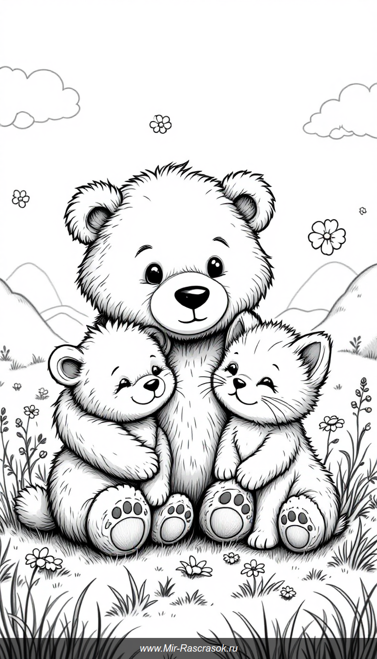 Погрузитесь в мир милых животных с нашими новыми раскрасками! 🐻🐶🐱 Простая черно белая картинка идеально подходит для маленьких художников. Скачайте и начните раскрашивать сейчас! SEO радость и творчество для вашего ребенка! ✨🖍️