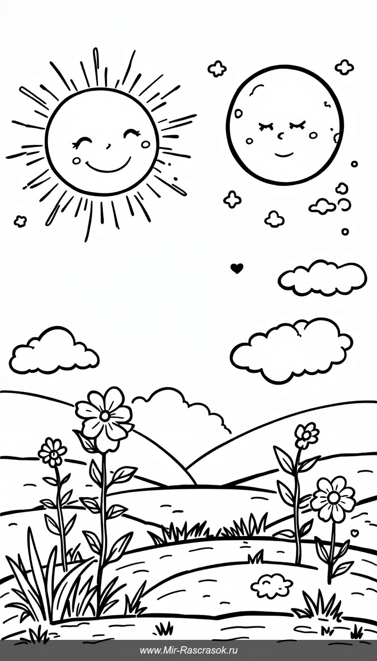 Погрузитесь в весёлый мир ☀️🌙☁️ с нашей новой раскраской для детей Приготовьтесь раскрашивать доброго солнце, спокойную луну и пушистые облака Простые и дружелюбные картинки для развития творчества и радости творчества
