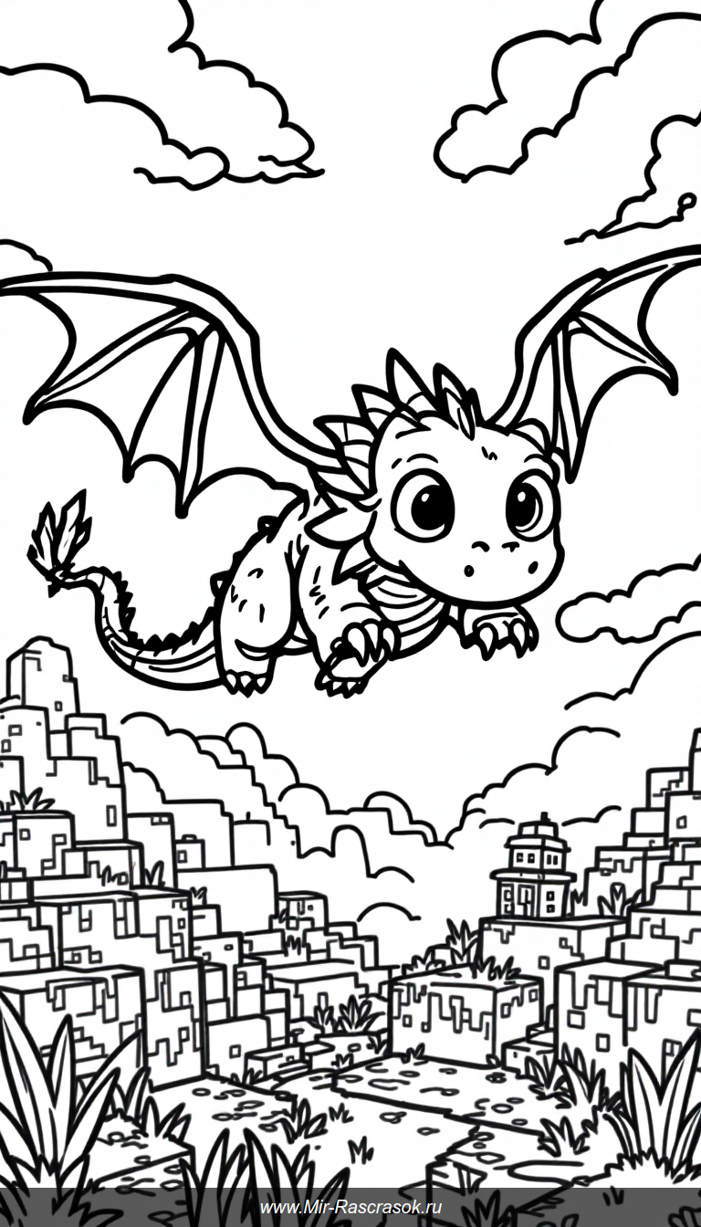 Погрузитесь в увлекательный мир Майнкрафт с дружелюбной битвой с Эндэр Дрэгоном 🐉 Игрок и дракон представлены просто и красочно для детского творчества 🎨 Отличная раскраска для малышей и поклонников игры Minecraft 🌟
