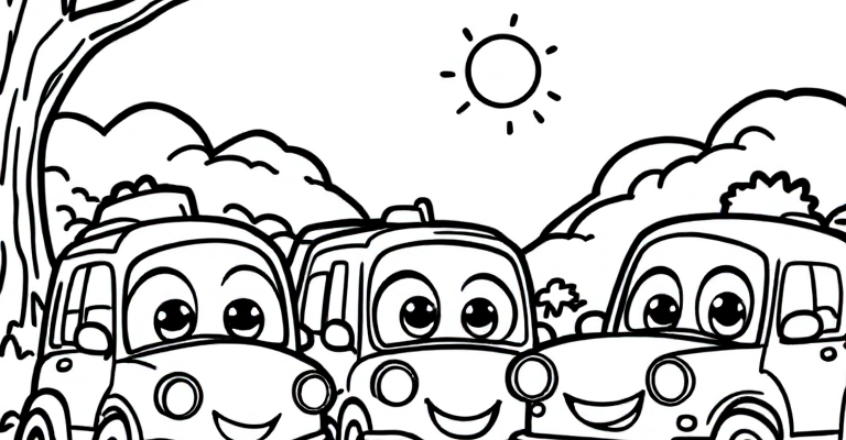 Веселая раскраска с маленькими машинками порадует детей всех возрастов 🚗🌞 Простая и понятная сцена помогает детям развивать творческие способности и мелкую