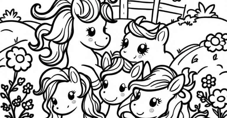 Откройте мир милых пони с нашей раскраской для детей 🐴🌼 Простые и дружелюбные сцены помогут развить фантазию и мелкую моторику 🎨❤ Наслаждайтесь цветом
