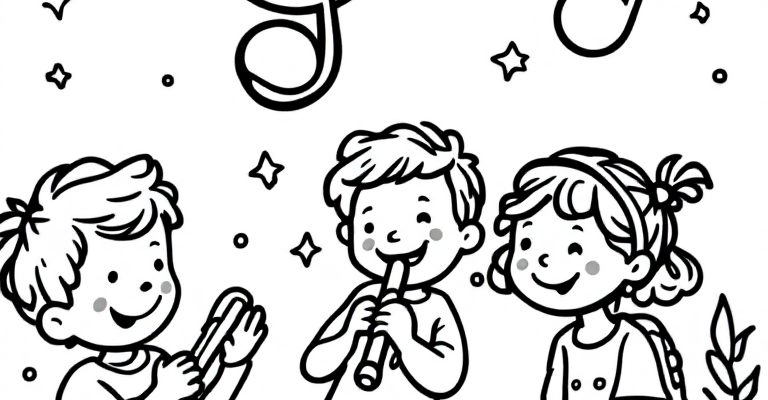 Погрузитесь в мир музыки с нашей раскраской музыкальных нот 🎵 Весёлые ноты и улыбающиеся дети с простыми инструментами помогут развить творческое мышление