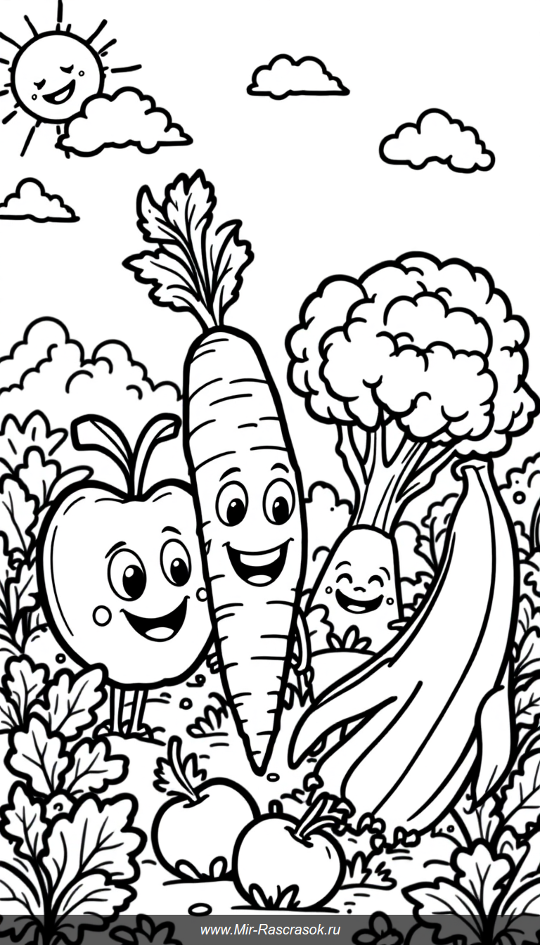 Откройте для детей веселый мир раскрашивания с улыбающимися фруктами и овощами в нашем новом сборнике раскрасок🍎🥕🍌🌞 Идеально для развития творчества и хорошего настроения🎨👧👦