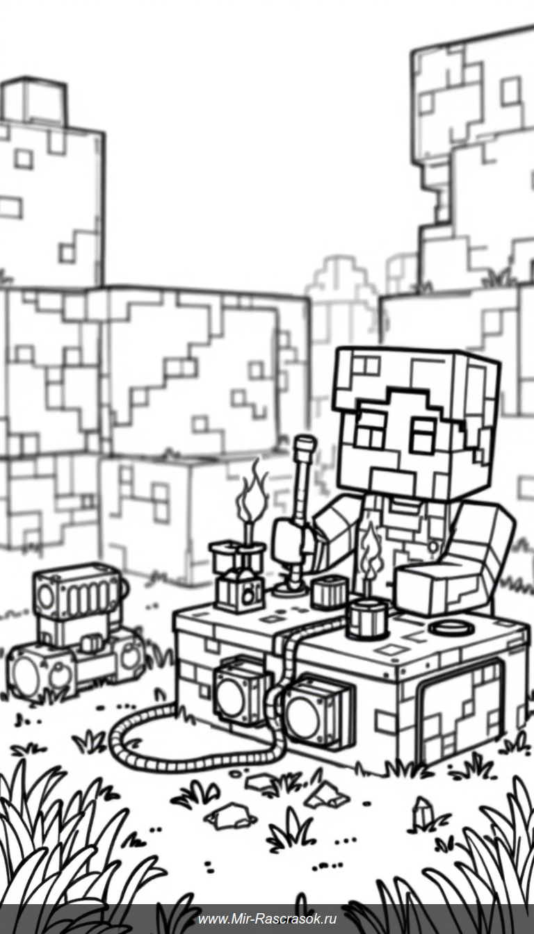 Познакомьтесь с увлекательным миром редстоун механизмов в Майнкрафте 🎮✨ Простые и дружелюбные рисунки для раскрашивания помогут детям узнать о стиле и основах игры в веселой форме 🎨🚀